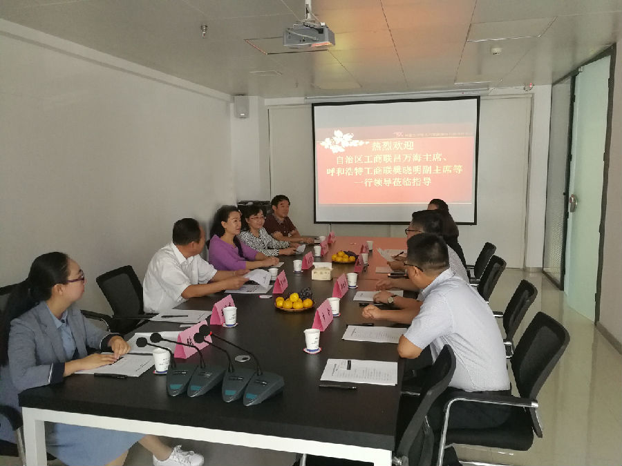 2017年9月8日,自治區(qū)工商聯(lián)主席呂萬海、自治區(qū)非公有制經(jīng)濟服務(wù)中心負責(zé)人白春艷,呼和浩特市工商聯(lián)副主席徐惠忠、秘書長兼調(diào)研處處長李忠善,呼和浩特市工商聯(lián)調(diào)研處干部張文雨,呼和浩特市工商聯(lián)調(diào)研處干部王治東一行來我公司調(diào)研指導(dǎo)工作,我司總經(jīng)理韓士清及各部門經(jīng)理陪同調(diào)研,熱情招待并介紹了相關(guān)情況。
